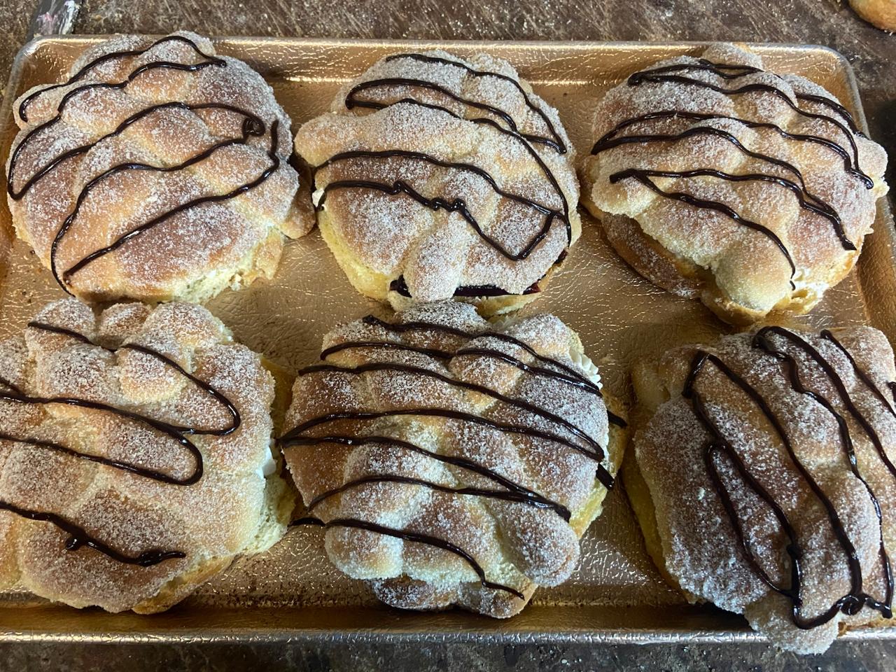 Una delicia tradicional con un toque irresistible. Nuestro pan de muerto esponjoso y aromático está cuidadosamente espolvoreado con azúcar, relleno con un suave y cremoso chantilly que se derrite en tu paladar, y coronado con una generosa cobertura de chocolate que lo vuelve simplemente inolvidable. Cada bocado es un festín de texturas y sabores: la suavidad del pan, la dulzura de la crema y el toque intenso del chocolate crean una experiencia única que celebra nuestras tradiciones con un giro delicioso. ¡Ideal para compartir... o no!
